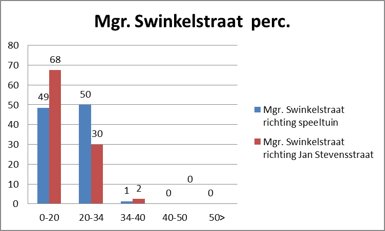 Op de Mgr. Nooijenstraat is uit metingen gebleken dat thv van het speeltuintje niet te hard wordt gereden. Het aantal overtreders bleek hier maar 1,3% te bedragen.